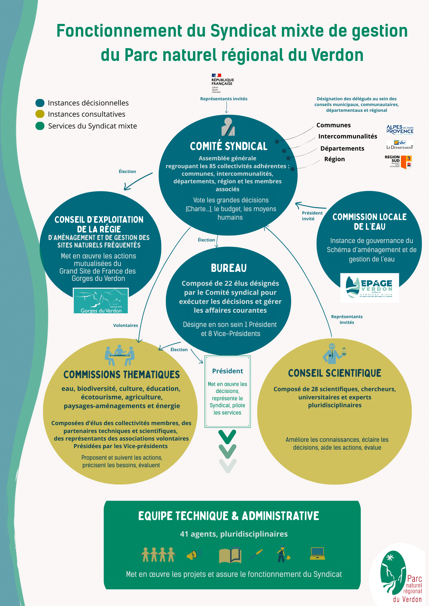 Le syndicat mixte de gestion du Parc naturel régional du Verdon répond à plusieurs objectifs et pour ce faire, est organisé autour de trois objets :